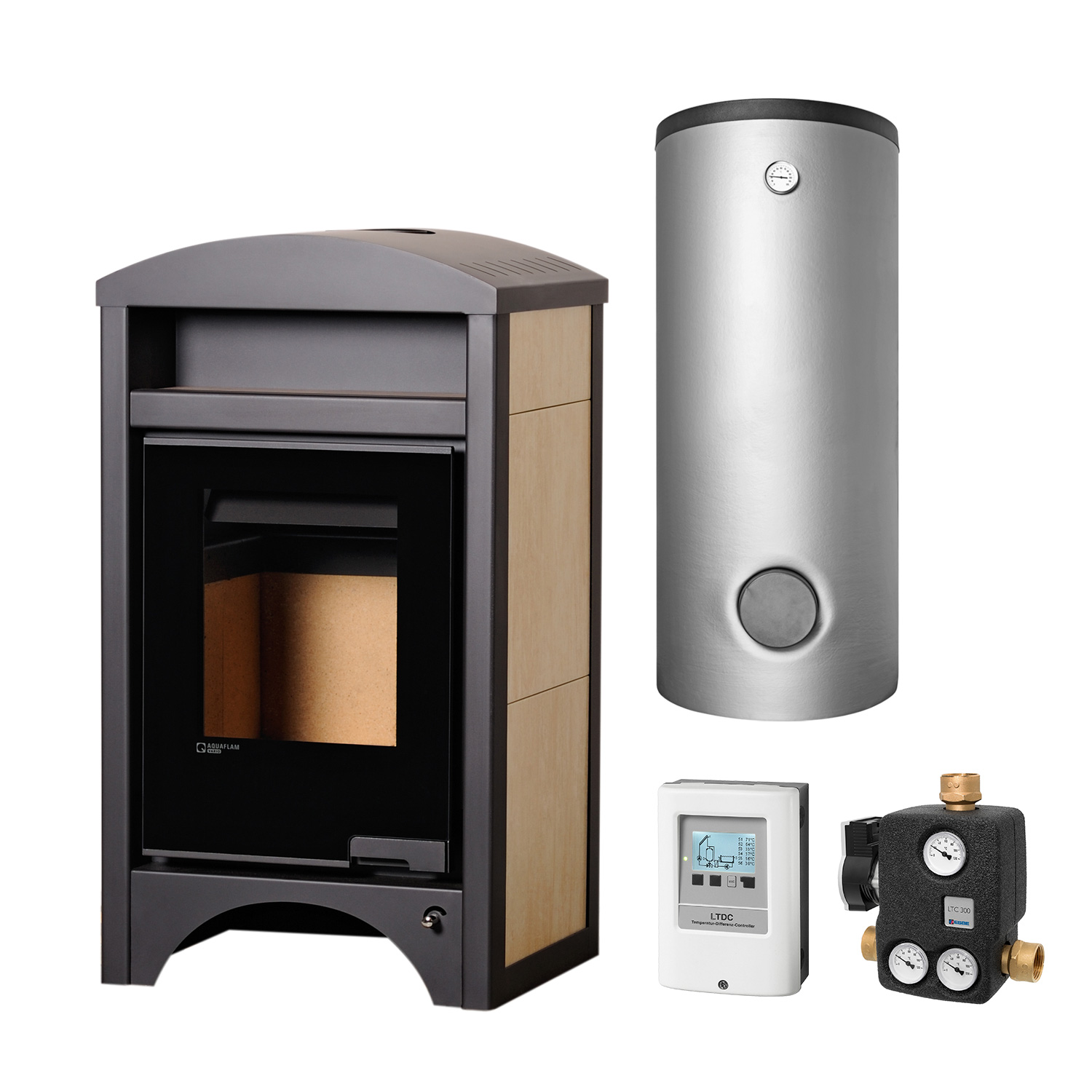Aquaflam Vario Barma 11 kW Poêle à bois hydraulique Basic Maple Ensemble complet avec réservoir tampon TPSM 500