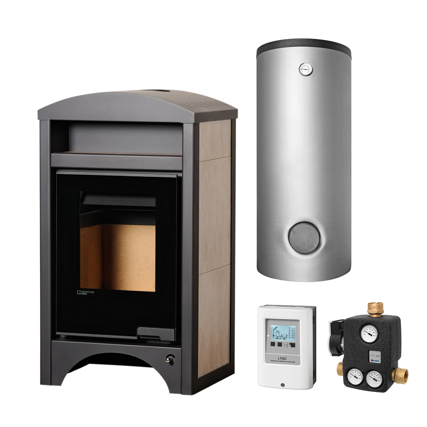 Aquaflam Vario Barma 11 kW Poêle à bois hydraulique Basic White Oak Ensemble complet avec ballon tampon TPSM 500