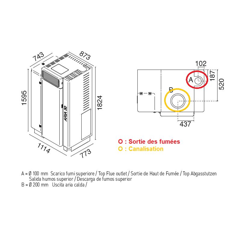 • Diamètre évacuation des fumées : 100 mm
