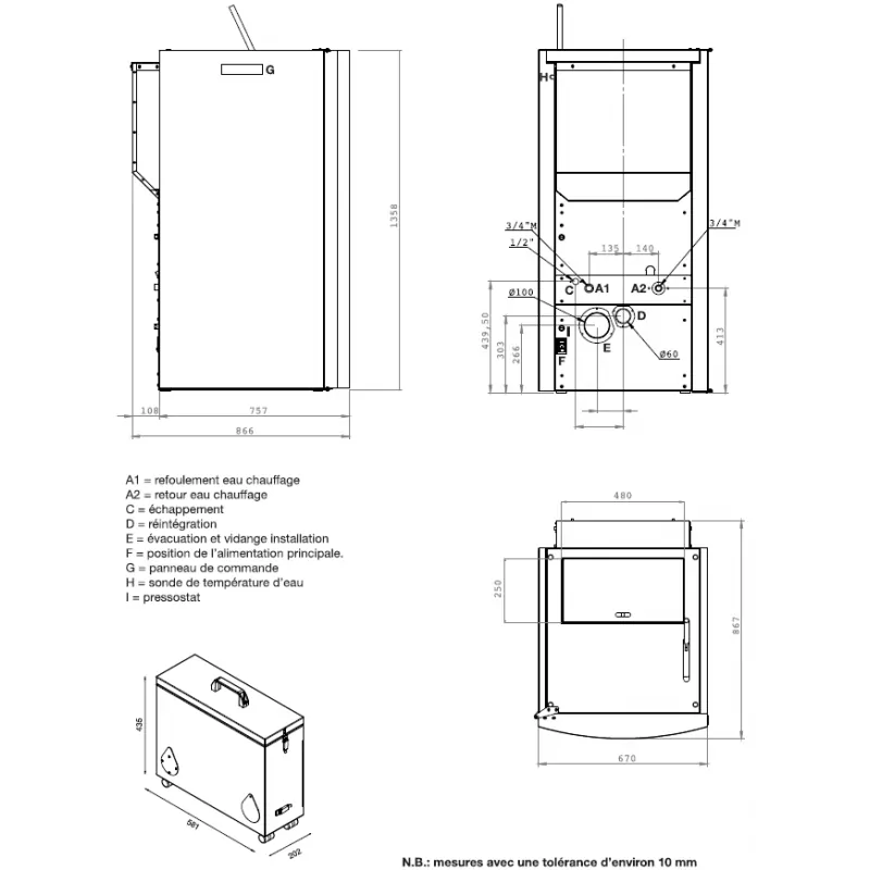 • Diamètre sortie des fumées (mm) : 100