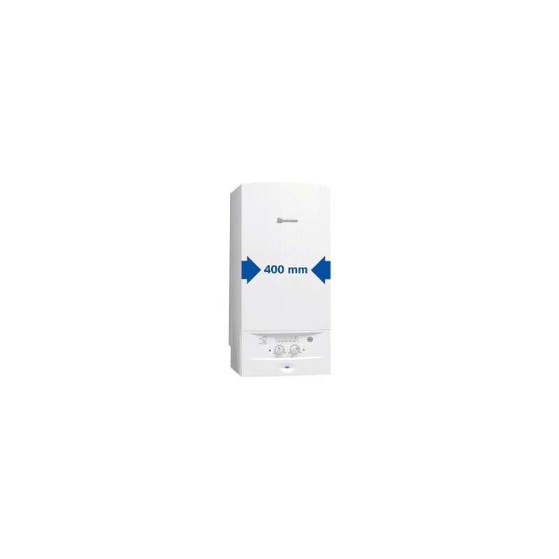 Cette chaudière à gaz naturel offre une puissance utile maximale de 24 kW et une température maximale de chauffage de 90°C. Elle est équipée d’un brûleur échangeur à flamme refroidie, qui réduit considérablement les émissions d’oxydes d’azote tout en conservant des performances en chauffage exceptionnelles. Une mini-accumulation avec ballon intégré de 5 litres permet d’avoir de l’eau chaude sans attendre, et d’obtenir une stabilité de la température au demi degré près.