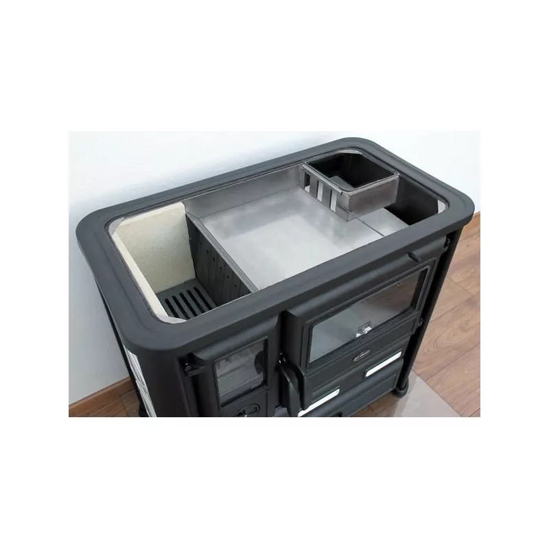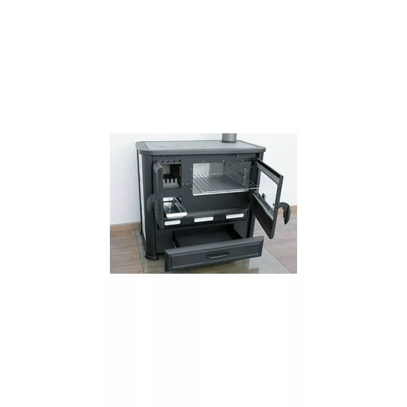 La cuisinière Alma Mons est conçue pour simplifier votre quotidien. Son tiroir à cendres amovible permet un nettoyage rapide et efficace, tandis que le fond du four extractible facilite son entretien après utilisation. Le grand tiroir de rangement situé sous le four offre un espace pratique pour stocker votre bois ou vos accessoires de cuisine.