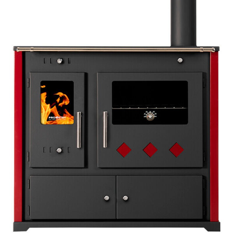 La Prometey Lux Eco est une cuisinière à bois contemporaine, conçue pour associer performance thermique et esthétique raffinée. Grâce à sa plaque en céramique robuste et ses panneaux latéraux rouge brillant, elle apporte une touche de modernité à tout intérieur tout en garantissant un chauffage efficace.