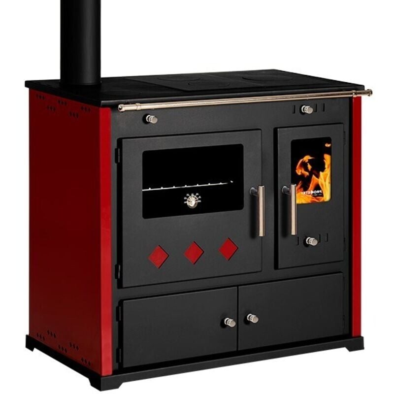 Cuisinière à Bois Prometey Pr. Lux Eco – 9,5 kW Plaque en Fonte, Design Élégant, Efficacité Énergétique et Sortie de Fumée à Gauche
