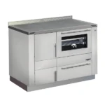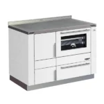 Le WH 1200 dispose d’un raccordement à l’air extérieur qui, sur demande, amène l’air de combustion de l’extérieur et garantit ainsi un climat ambiant sain. Vous pouvez intégrer sans problème le WH 1200 dans votre cuisine, car les unités de protection incendie nécessaires sont déjà intégrées dans l’appareil. La hauteur de la cuisinière s’adapte également de manière optimale (85-90 cm) grâce à des petits pieds dans le socle.