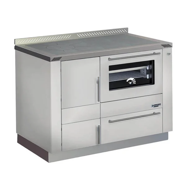 La cuisinière WH 1200 de Greithwald a été conçue avec le souci du détail. Le cadre de la cuisinière en acier inoxydable avec angle de plaque à l’arrière offre une stabilité et confère à la cuisinière un aspect élégant. Vous avez le choix entre une plaque de cuisson en acier poli ou une plaque vitrocéramique. Le four en acier inoxydable, livré avec une plaque et une grille de cuisson, est facile à surveiller grâce à la fenêtre de contrôle avec thermomètre intégré.