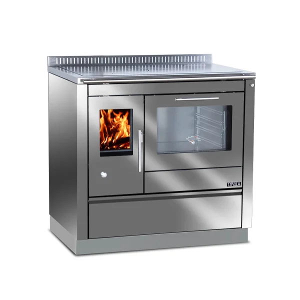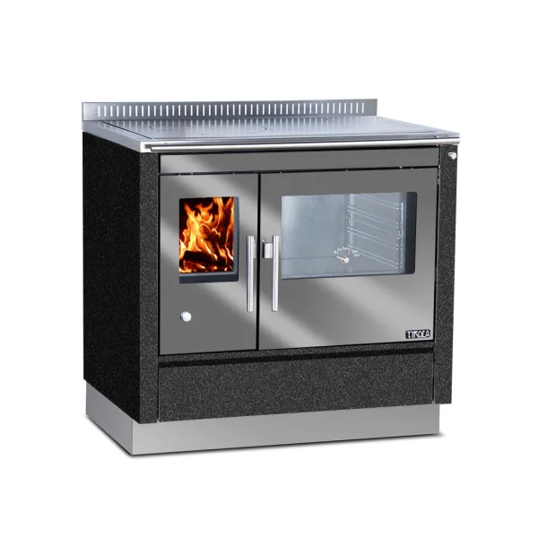 Pour l’intégration dans votre espace de vie, vous avez la possibilité d’équiper la cuisinière Tyrola TR_C 90 de nombreuses fonctionnalités. Par exemple, vous pouvez choisir entre une extension de l’âtre, un kit de protection contre le feu sans élargissement des dimensions de l’âtre et une base en acier inoxydable réglable en hauteur. Celle-ci peut avoir une hauteur de 4 cm ou de 10 cm. Pour intégrer la cuisinière dans votre cuisine équipée, vous pouvez acheter une structure séparée assortie pour l’installation d’appareils électriques supplémentaires. Ainsi, le poêle de cuisine Tyrola TR_C 90 peut être merveilleusement intégré dans votre cuisine équipée.
