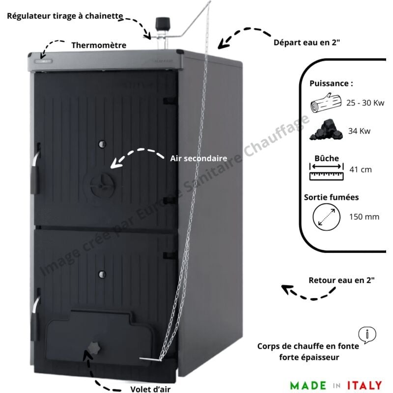 Découvrez l’insert chaudière en acier au carbone Escalor, un système de chauffage à eau performant et design. Ce modèle est idéal pour un chauffage central efficace, avec une capacité de chauffe impressionnante et une grande durabilité.