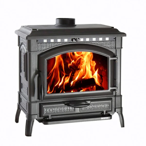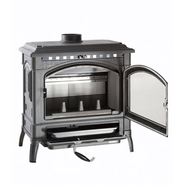 Une fois le feu éteint, le corps en fonte continue à diffuser une chaleur agréable dans la pièce pendant un certain temps. Les restes du feu peuvent être facilement transportés par une grille vibrante dans le compartiment à cendres situé sous la chambre de combustion.