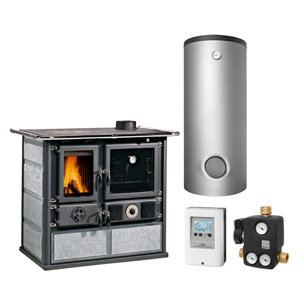 La Nordica Termorosa DSA Bordeaux Poêle à bois hydro avec ensemble complet de réservoir tampon TPSM 600