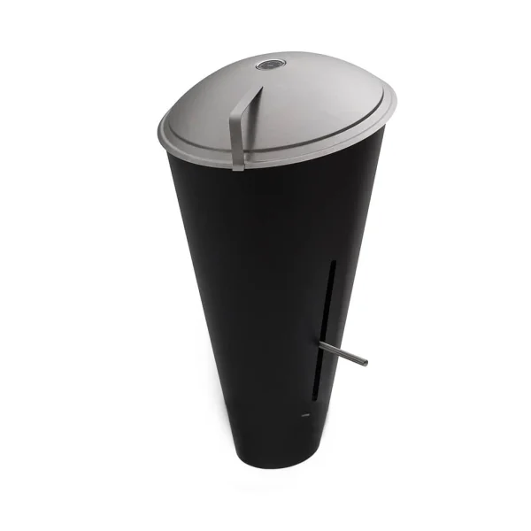 Sont également inclus deux crochets en acier inoxydable qui se fixent au gril et peuvent être utilisés pour suspendre des couverts de barbecue ou des serviettes. Veuillez noter que ce modèle n’est pas fourni avec des pieds, mais avec un anneau intégré en acier inoxydable de 60 cm de diamètre. Cela vous permet d’encastrer le Cône dans une table ou un plan de travail.