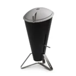 Lorsque les grillades sont terminées mais que la société n’est pas encore dissoute, vous pouvez simplement retirer les grilles du gril, remonter complètement la grille de charbon de bois et transformer le Cône en cheminée. Le couvercle rabattu prend alors la fonction de coupe-vent.
