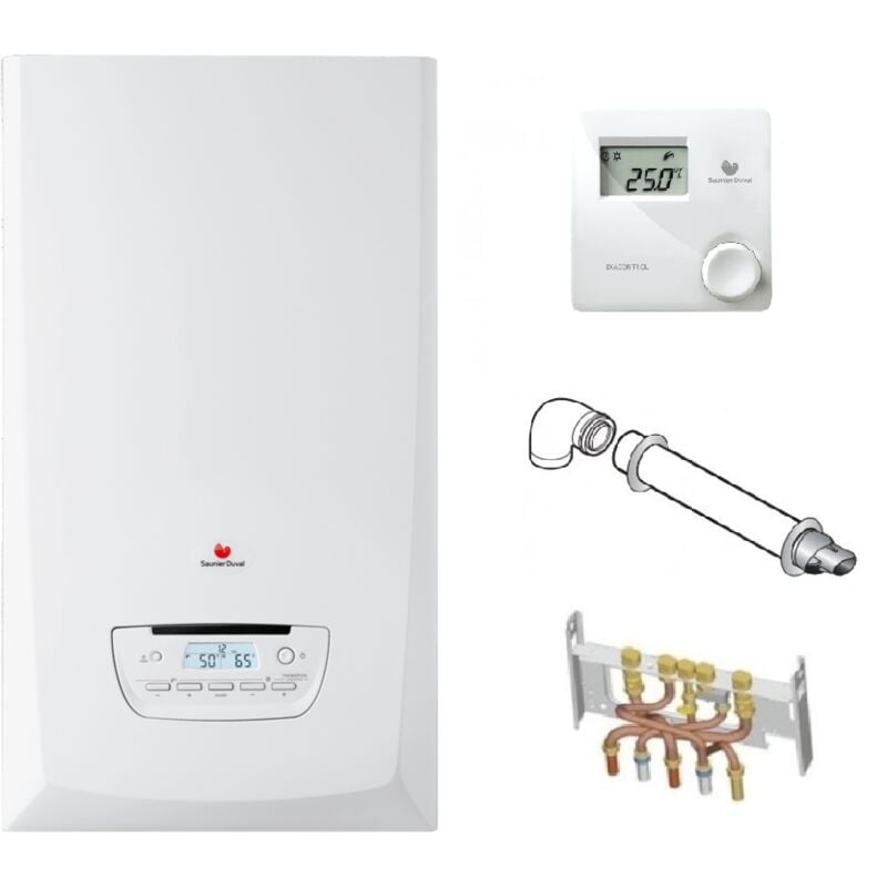PACK CHAUDIERE GAZ MURALE THEMAPLUS CONDENS F25 SAUNIER DUVAL DOSSERET+VENTOUSE+THERMOSTAT