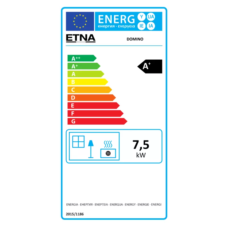 Le modèle Domino 8 de la marque Etna est un poêle à bois à haut rendement (plus de 85%) qui se distingue par ses attributs techniques et esthétiques. Classé A+ en efficacité énergétique et labellisé Flamme verte, ce poêle délivre une puissance de 7.5 kW, suffisante pour chauffer une surface jusqu’à 80 m² ou un volume de 200m³ . Il pèse 80 kg et peut accueillir des bûches jusqu’à 33 cm. Il est proposé en 2 versions: avec pied ou avec un espace de stockage de bûches.